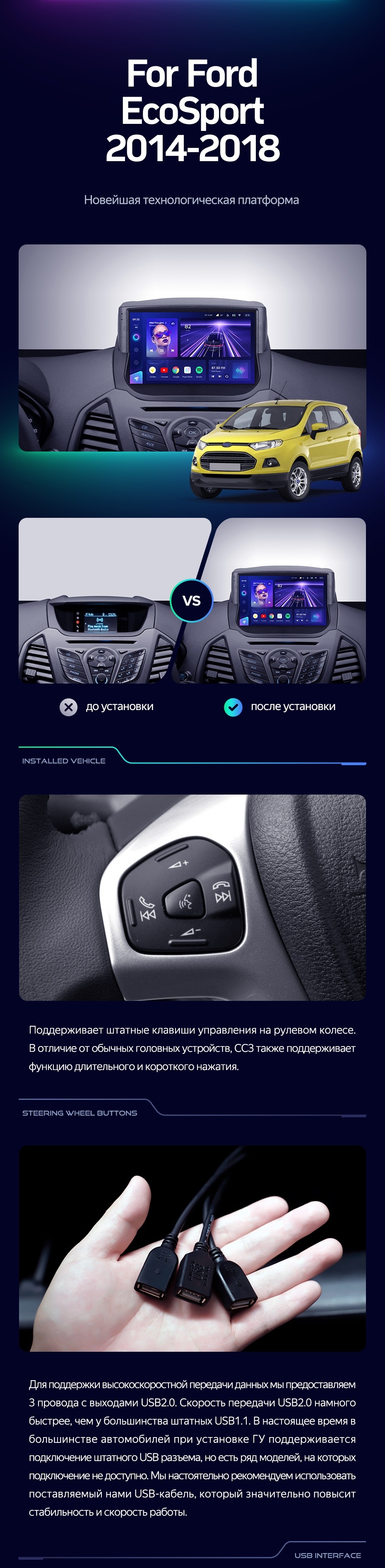Штатная магнитола Teyes CC3 4/32 Ford EcoSport (2014-2018) F1 - купить всего за 33 530 руб. в интернет-магазине в Череповце Teyes.com.ru. ✓ Самый лучший выбор мультимедиа ✓ Лучшая замена штатному ГУ ✓ Тел. +7 (800) 775-31-74