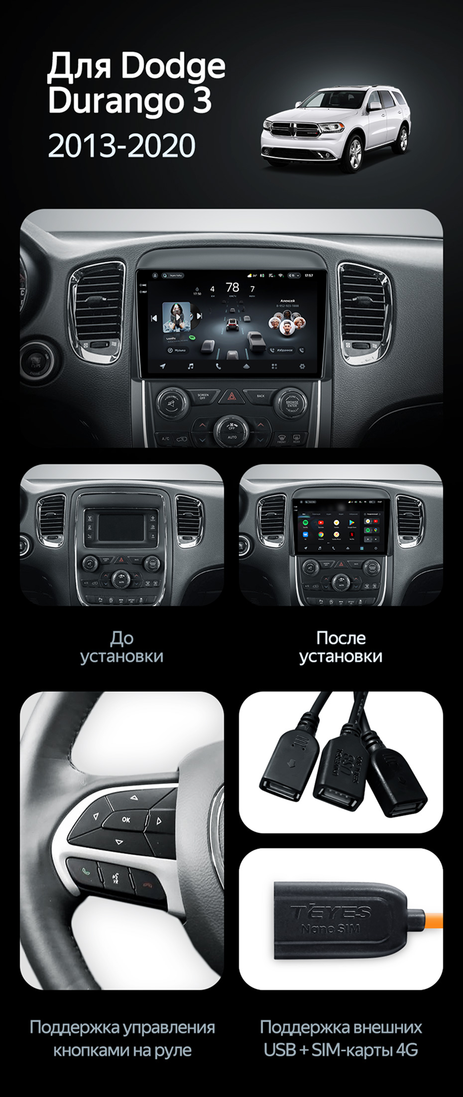 Штатная магнитола Teyes CC3L WiFi 2/32 Dodge Durango 3 (2013-2020) - купить всего за 19 300 руб. в интернет-магазине в Череповце Teyes.com.ru. ✓ Самый лучший выбор мультимедиа ✓ Лучшая замена штатному ГУ ✓ Тел. +7 (800) 775-31-74