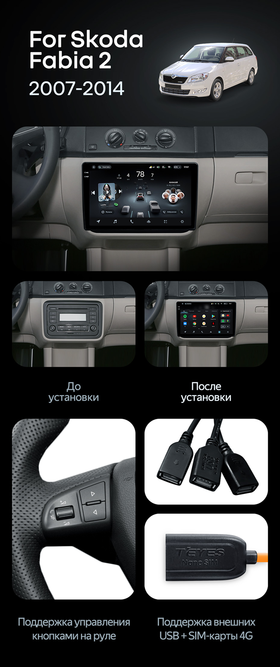 Штатная магнитола Teyes CC4 6/64 Skoda Fabia 2 (2007-2014) - купить всего за 47 800 руб. в интернет-магазине в Череповце Teyes.com.ru. ✓ Самый лучший выбор мультимедиа ✓ Лучшая замена штатному ГУ ✓ Тел. +7 (800) 775-31-74