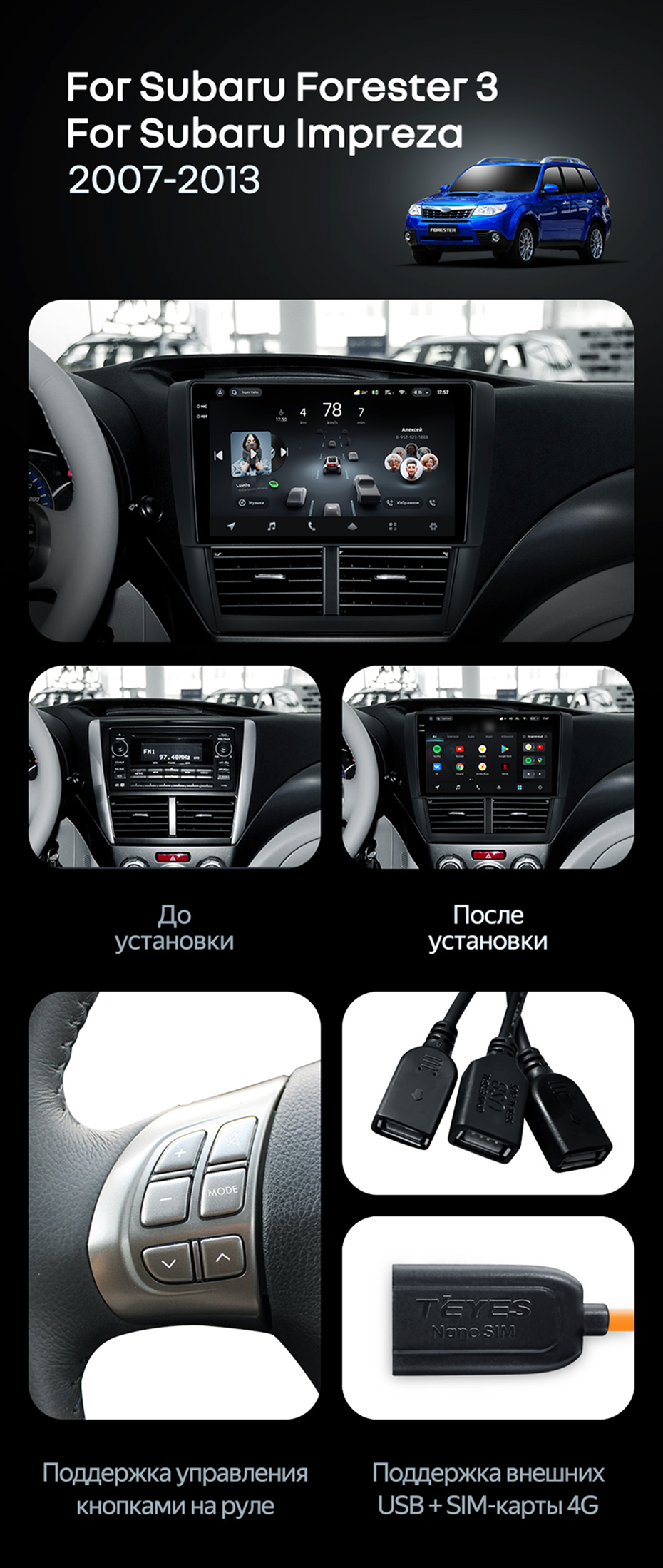 Штатная магнитола Teyes CC4 6/64 Subaru Forester 3 SH (2007-2013) - купить всего за 43 400 руб. в интернет-магазине в Череповце Teyes.com.ru. ✓ Самый лучший выбор мультимедиа ✓ Лучшая замена штатному ГУ ✓ Тел. +7 (800) 775-31-74