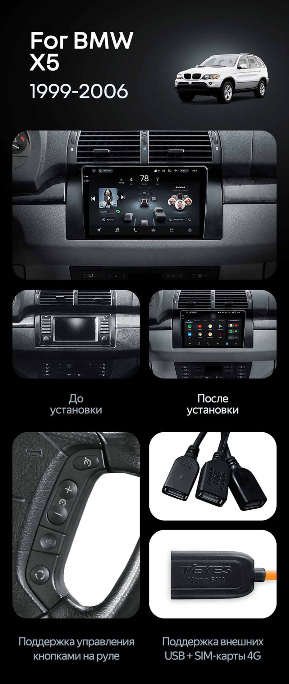 Штатная магнитола Teyes CC4 Pro 12/256 BMW X5 E39 E53 (1999-2006) - купить всего за 70 010 руб. в интернет-магазине в Череповце Teyes.com.ru. ✓ Самый лучший выбор мультимедиа ✓ Лучшая замена штатному ГУ ✓ Тел. +7 (800) 775-31-74