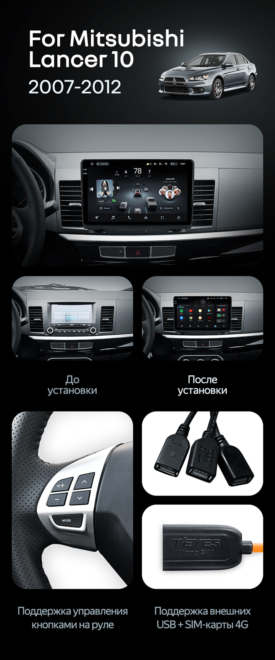 Штатная магнитола Teyes CC4 Pro 12/256 Mitsubishi Lancer 10 CY (2007-2012) Тип-B - купить всего за 69 750 руб. в интернет-магазине в Череповце Teyes.com.ru. ✓ Самый лучший выбор мультимедиа ✓ Лучшая замена штатному ГУ ✓ Тел. +7 (800) 775-31-74