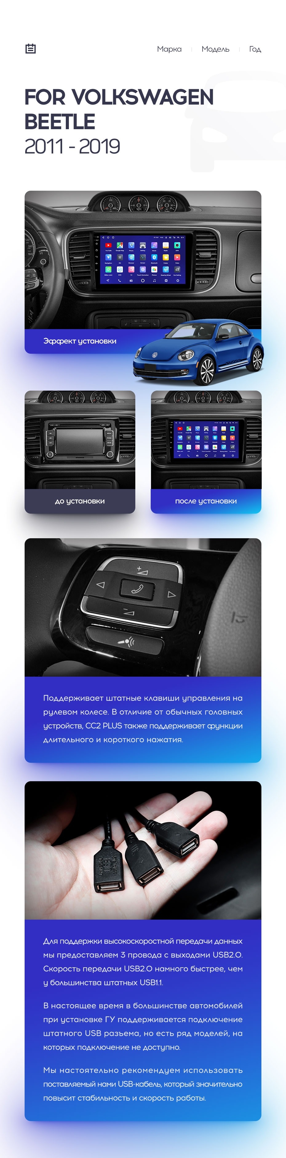 Полный комплект установки магнитолы Teyes с рамкой и проводкой можно выбрать в каталоге штатных магнитол Volkswagen Beetle A5 (2011-2019).